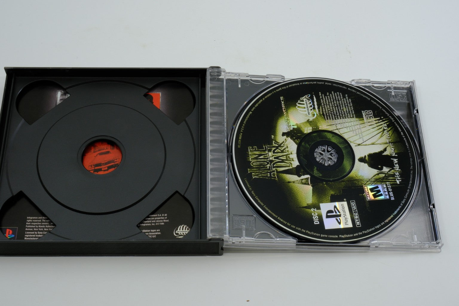 Sony PlayStation jewel case; NTSC-U/C; ESRB Mature; Darkworks logo; Infogrames logo; 2 Discs; SLUS-01201/01377 on cover; SLUS-01201 on disc