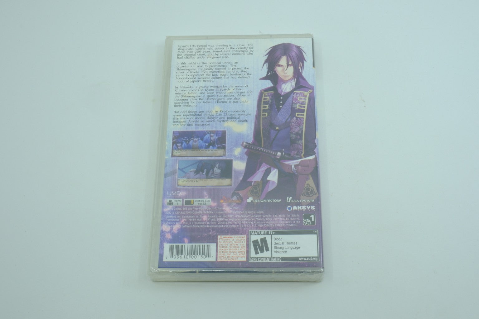 Sony PSP UMD case; Only On PlayStation banner; ESRB Mature 17+; Aksys Games; Idea Factory/Design Factory logos; UPC 893610001501