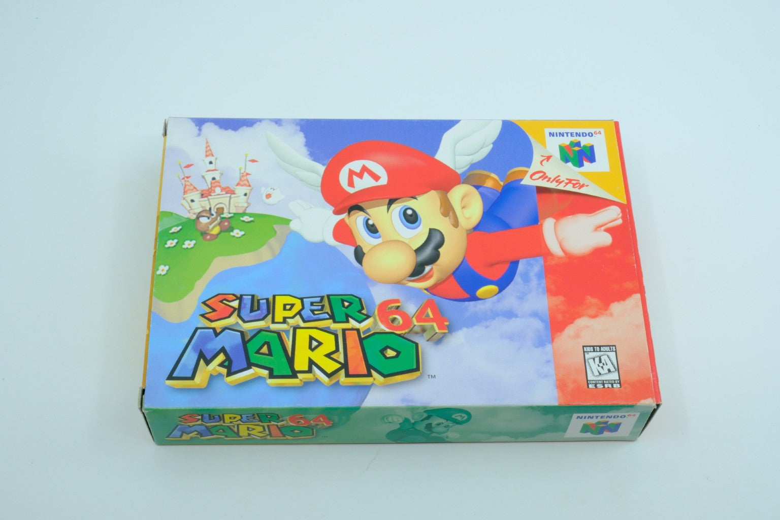Game cartridge, cardboard box, Super Mario 64 instruction manual, Nintendo 64 Consumer Information and Precautions Booklet